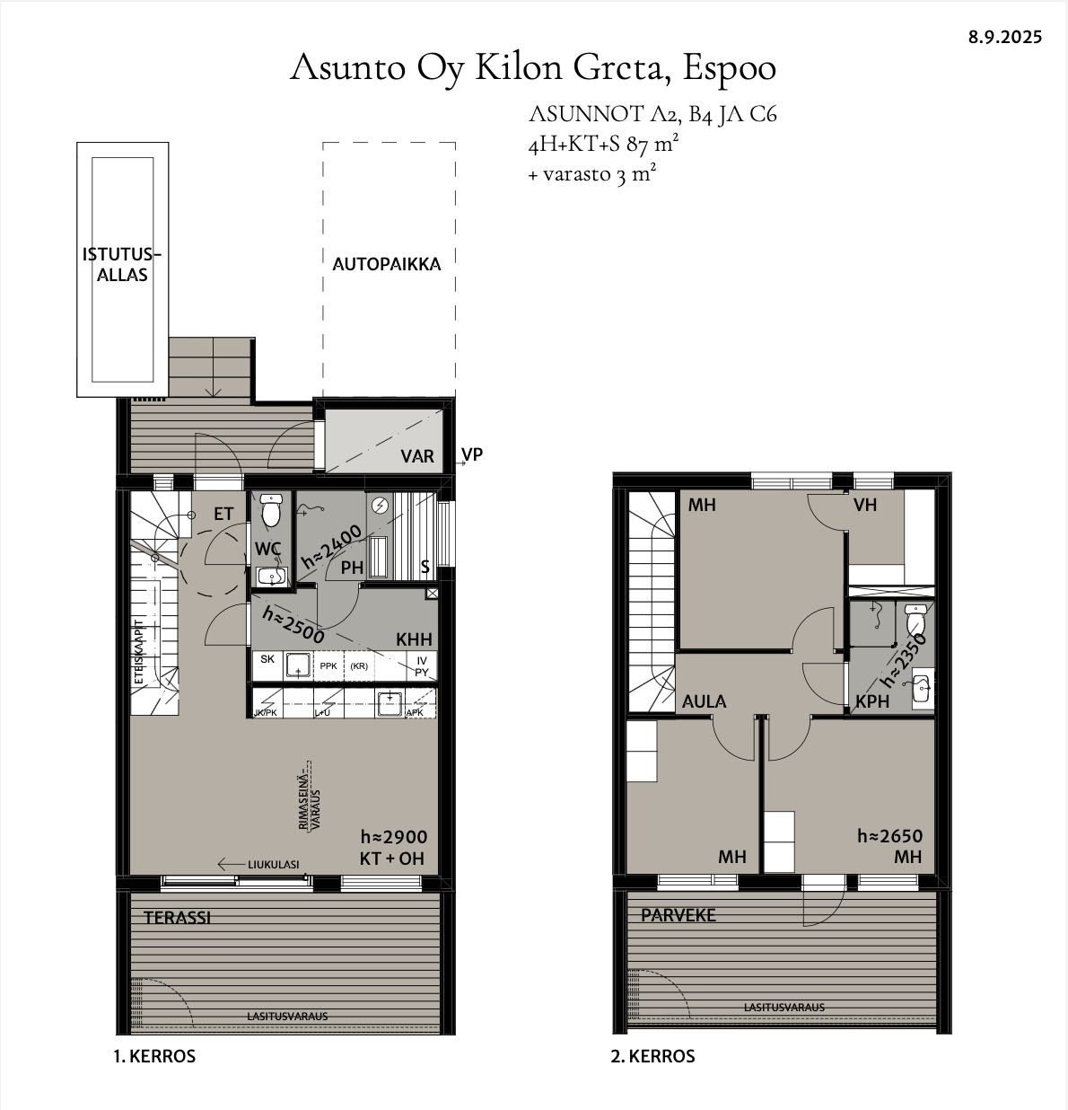 | 87 m² Näytä asunnon C5 tiedot | 4h + kt + s | 163 271 | 404 000 | C5 | Varattu |